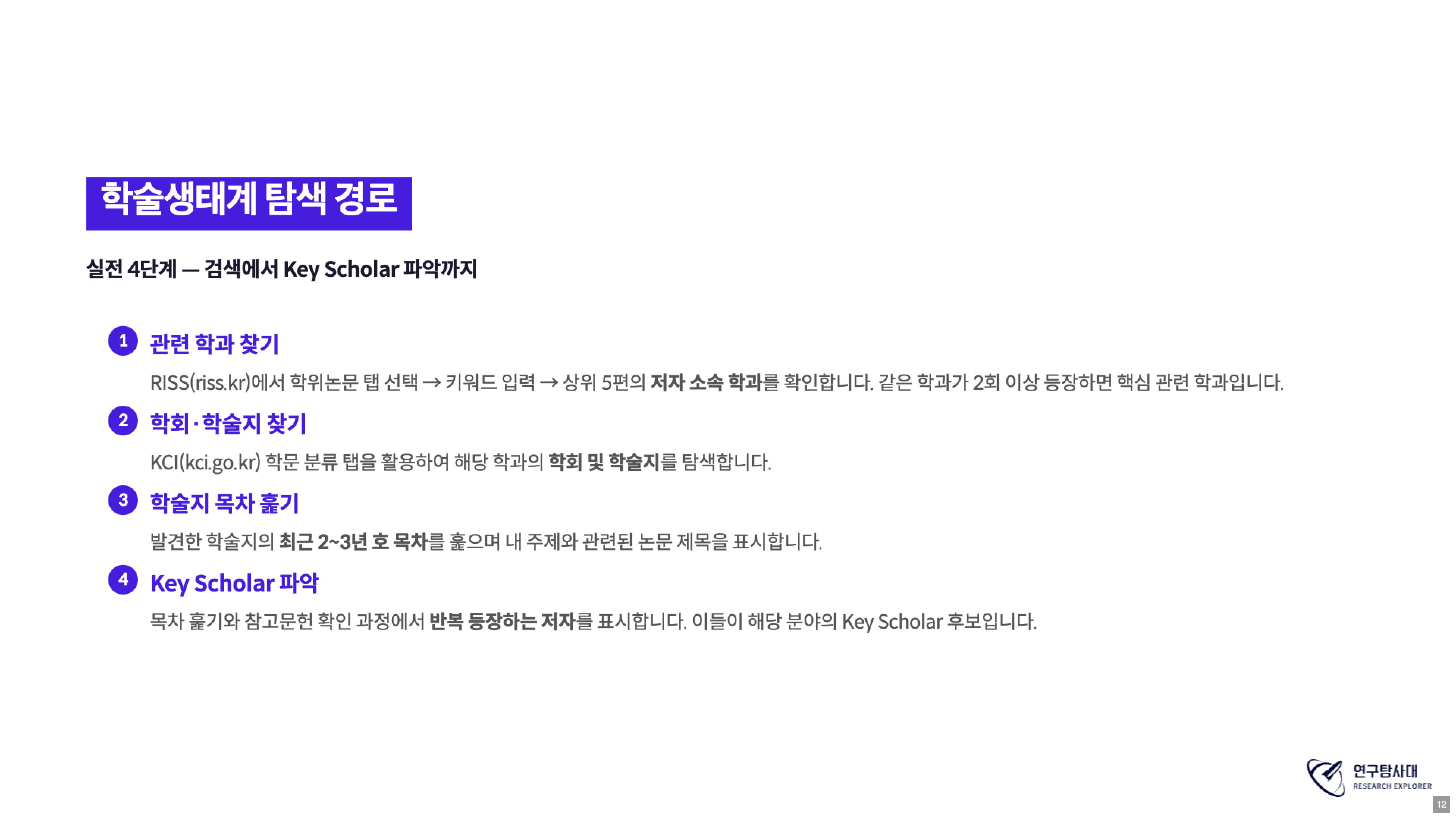 | Step 1 | 학술생태계 구조 파악 (목차 훑기) |