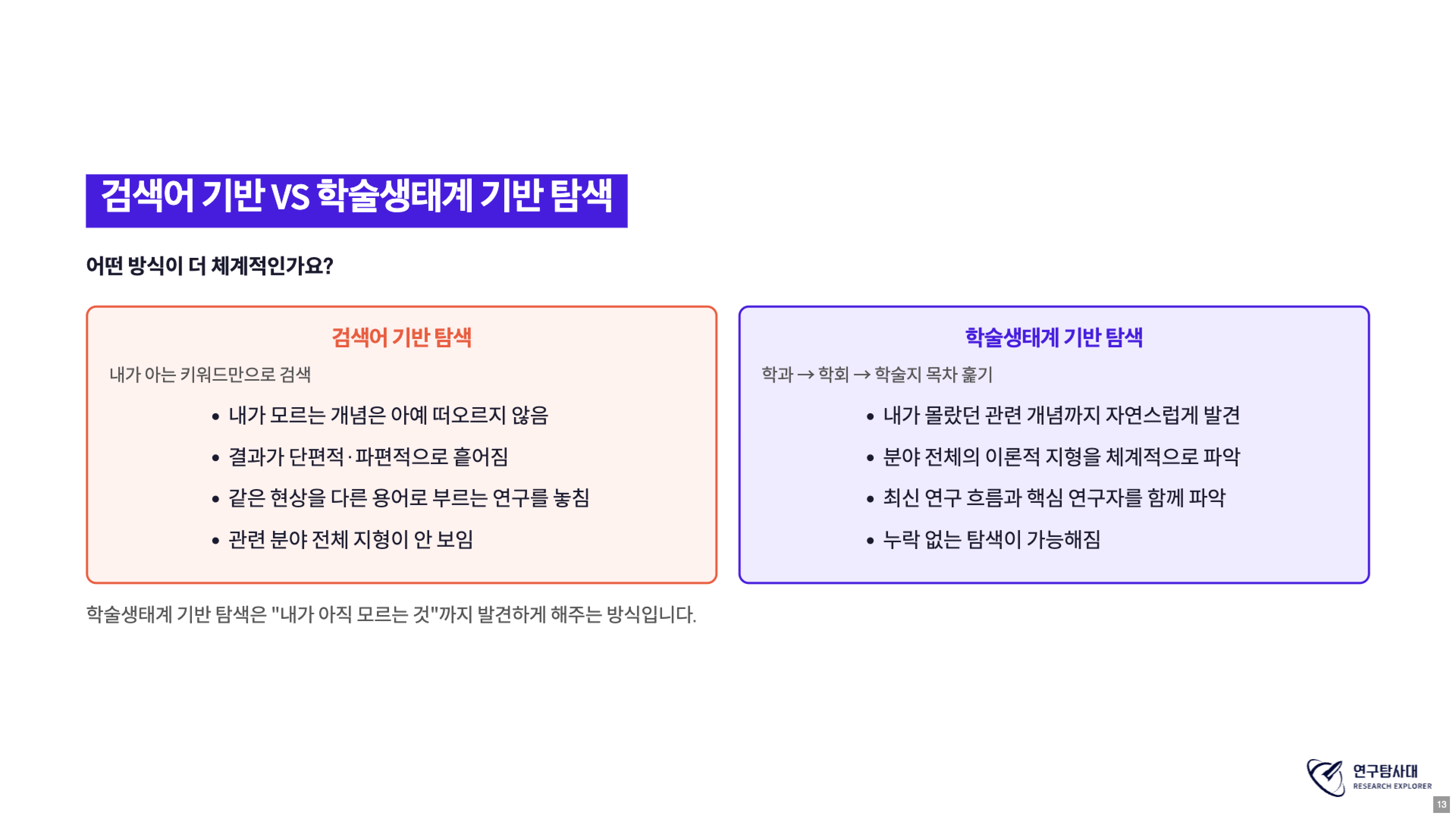 검색어 기반 탐색 vs 학술생태계 기반 탐색