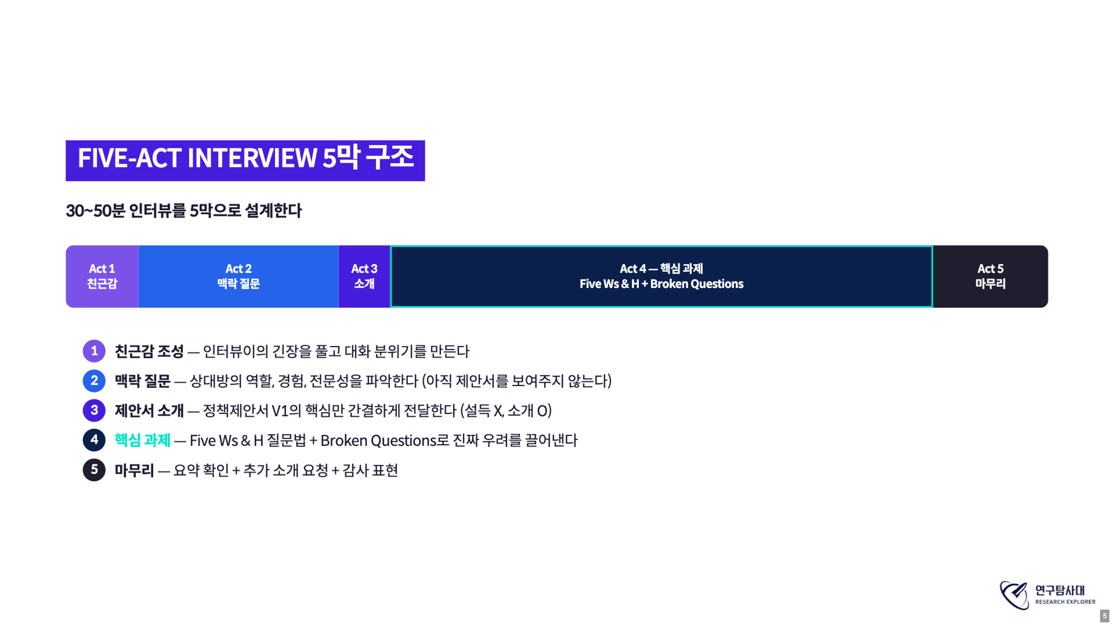 Five-Act Interview: 인터뷰의 5막 구조