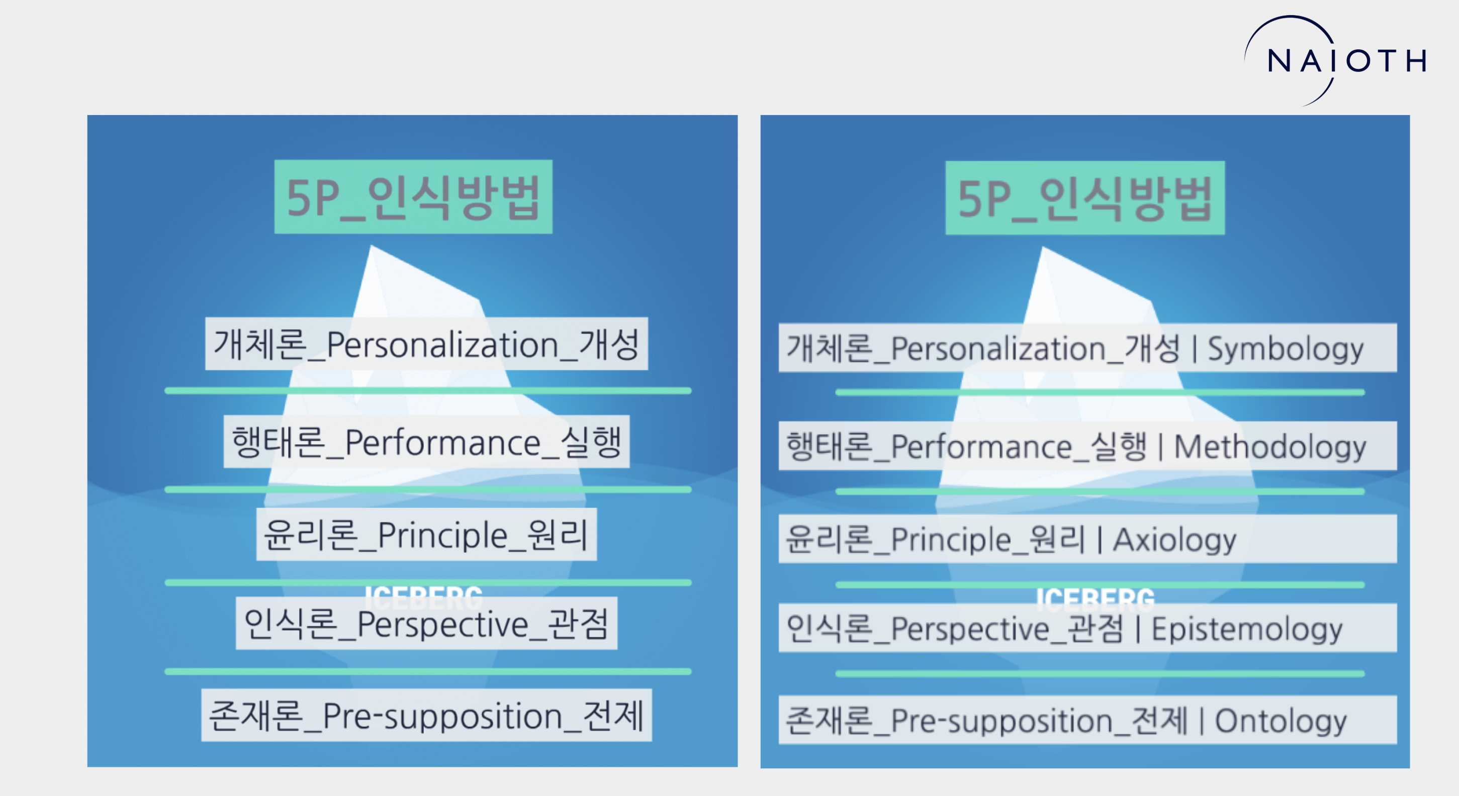 왜 역사가 그토록 중요한가. 철학에는 아이스버그 모형이 있다. 눈에 보이는 것은 행동(performance)뿐이다. 그 아래에 원리(principle)가 있고, 원리 아래에 관점(perspective)이 깔려 있으며, 가장 밑바닥에 존재론(presupposition)이 자리한다.