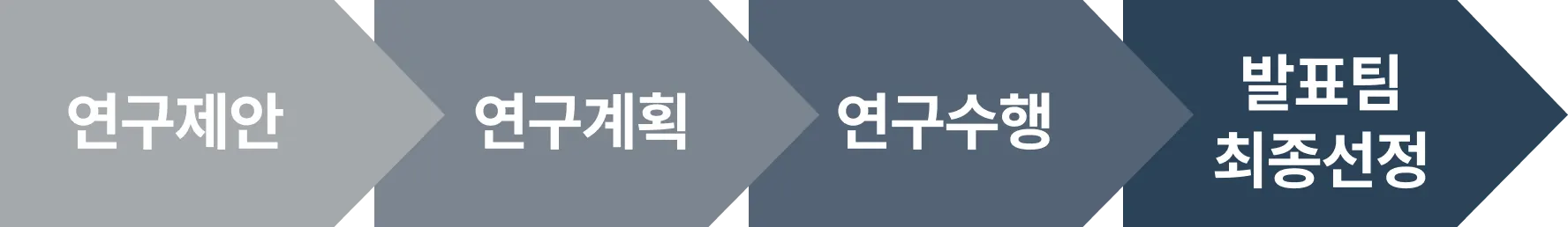 총 4개월 간의 연구수행과정을 통해 최종연구결과물을 작성하게 되고, 작성된 연구결과물을 토대로 심사를 통해 발표팀을 선정하게 됩니다.